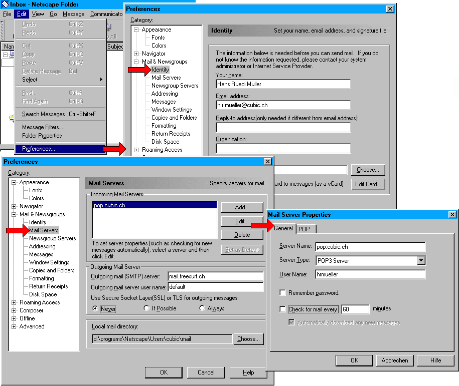 eingehende Post: pop.cubic.ch Benutzername: hrmueller Passwort: