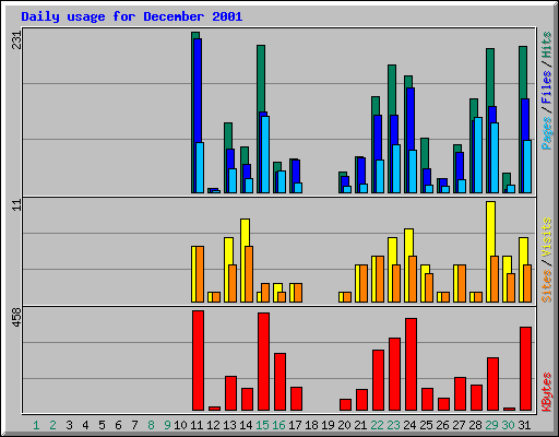 | Day | Hits | Files | Pages | Visits | Sites | KBytes | ||||||